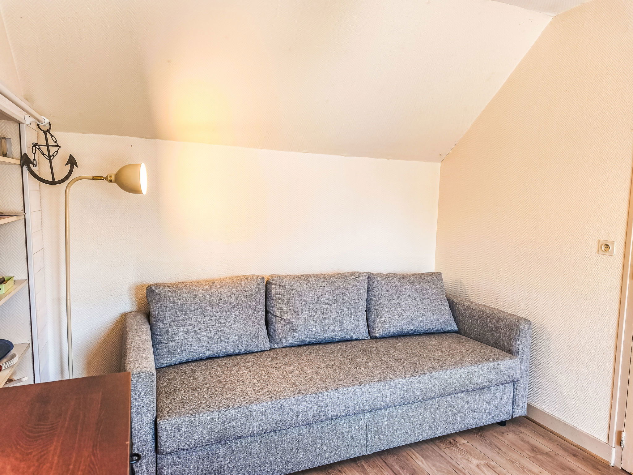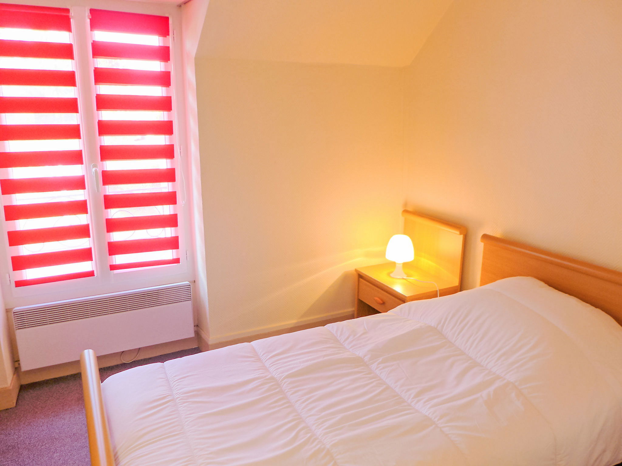 Appartement de 2 pièces 36 m2 au 1er étage. Partiellement rénové en 2026, aménagement simple et fonctionnel: séjour/salle à manger avec 1 divan-lit double (1 x 140 cm, longueur 190 cm), TV. 1 chambre avec 2 lits (90 cm, longueur 190 cm). Coin cuisine (2 plaques de cuisson, four, lave-vaisselle, grille-pain, bouilloire électrique, cafetière électrique). Salle de bains, WC séparé. Chauffage électrique. A disposition: lave-linge. Internet (Connexion WIFI, gratuit). Veuillez noter: logement non-fumeur. 1 animal/ chien de petite taille autorisé. Détecteur de fumée. Entrée commune côté jardin avec l'appartement "Groix" FR2736.120.2. Veuillez noter : accès par un escalier raide (15 marches). Le logement est côté rue. WIFI non disponible.