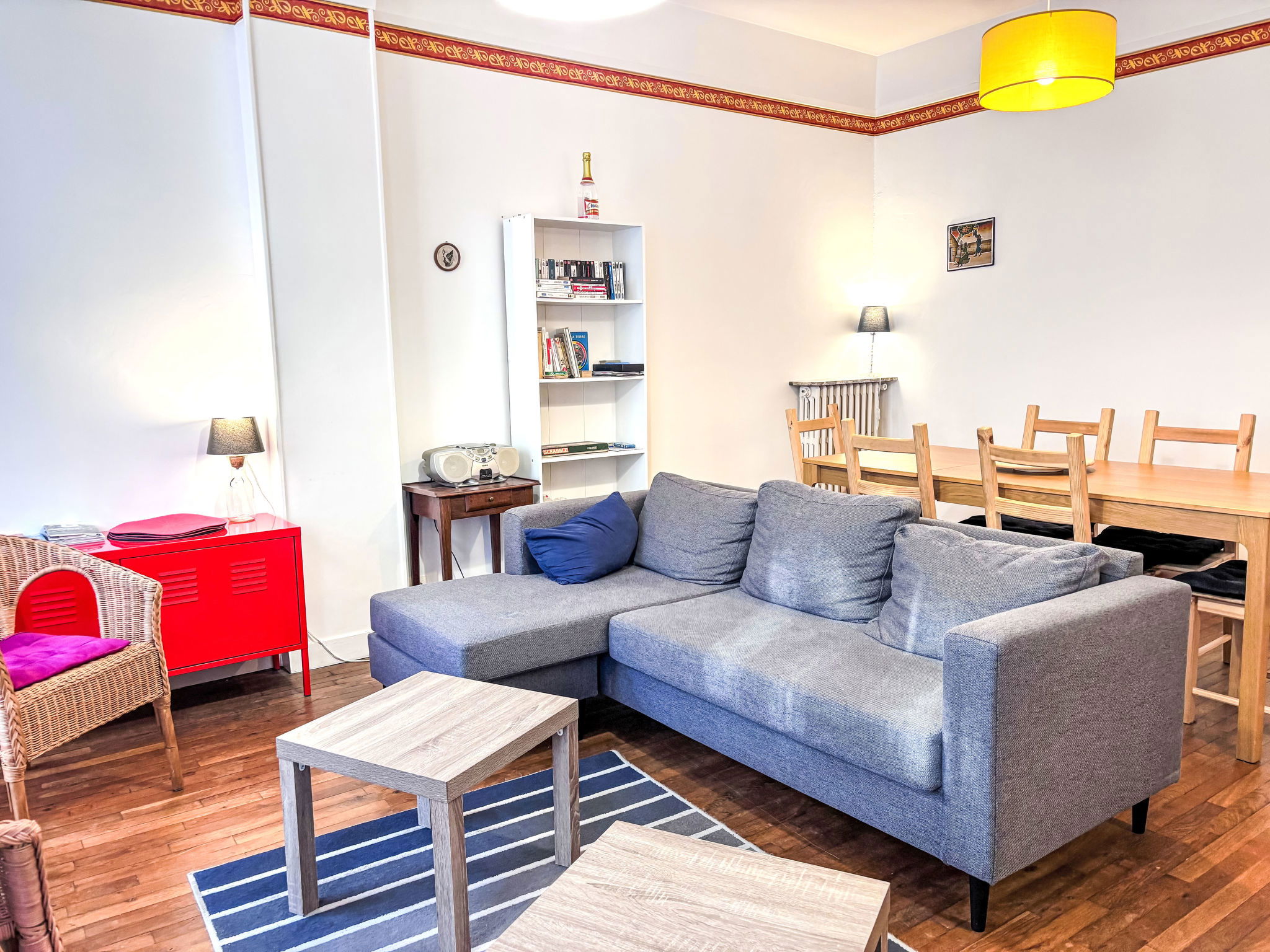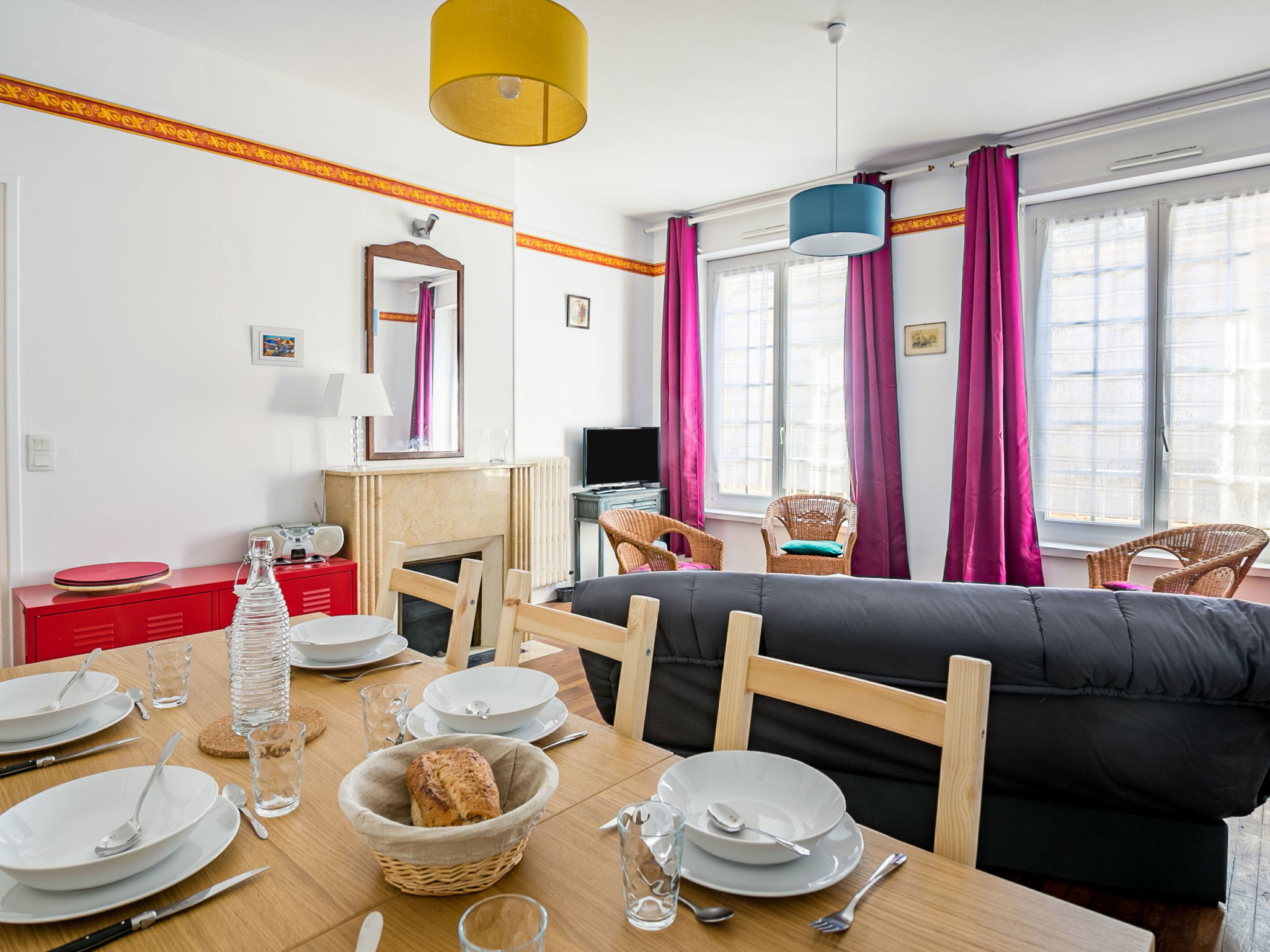 Appartement de 3 pièces 74 m2 au 3ème étage. Spacieux, rénové en 2020, aménagement confortable et agréable: grand séjour/salle à manger avec TV (écran plat), radio. 1 chambre avec 1 grand-lit (1 x 180 cm, longueur 200 cm). Sortie sur le balcon. 1 grande chambre avec 2 lits (90 cm, longueur 190 cm), 1 x 2 lits superposés (90 cm, longueur 190 cm). Grande cuisine (4 plaques de cuisson, four, lave-vaisselle, grille-pain, bouilloire électrique, micro-ondes, congélateur, cafetière électrique). Douche, WC séparé. Chauffage au gaz. Petit balcon. A disposition: lave-linge. Internet (Connexion WIFI, gratuit). Veuillez noter: adapté(e) aux familles. Maison non-fumeur. Détecteur de fumée. 352880030565C
